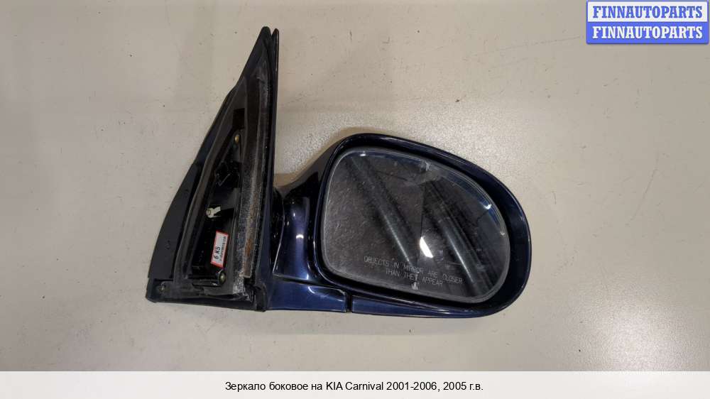 Компания FINNAUTOPARTS занимается продажей контрактных (б/у, бывших в употреблении) запчастей для иномарок. В нашей компании продаются только оригинальные запчасти из Европы, Японии и Кореи, которые не имеют пробега по РФ. Если вы хотите приобрести боковое зеркало (правое) для а/м Киа Карнивал 1, смело обращайтесь в нашу компанию. Все наши менеджеры — профессионалы своего дела, и с удовольствием помогут вам купить запчасти, в том числе, боковые зеркала правые, на Kia Carnival I (UP, GQ) и другие автомобили.