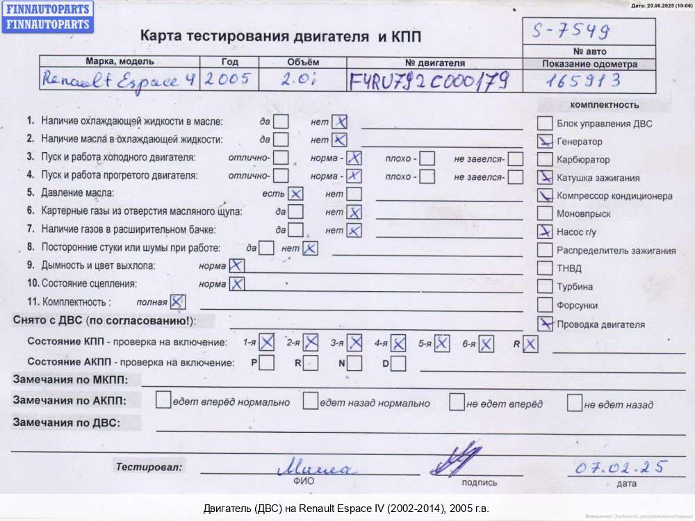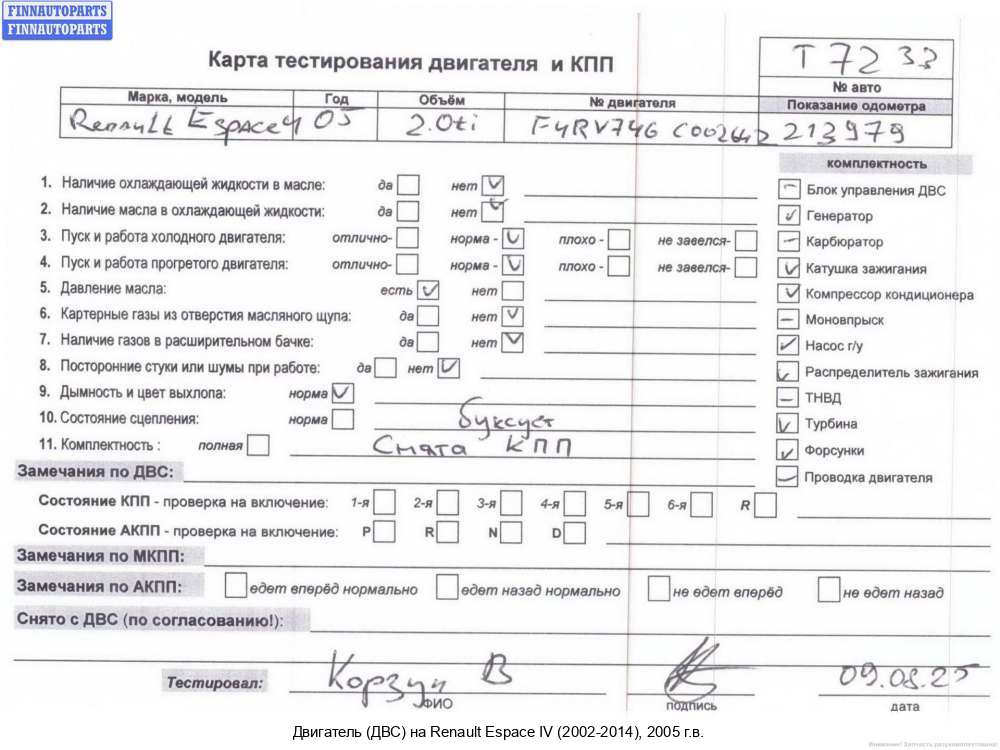Уфа | 2005 | 7701474491, 2005, 2.2л, Дизель, DCI, G9T 743, G9TK743C013853, 7701474491, Минивэн, красный, Фото не актуально, с запчасти отделены: Насос гидроусилителя руля (ГУР), G9TK743C013853 | - | Г | К | КК | ТУ, прокручивается, состояние ГРМ - нормально, поддон - мят, клапанная крышка - нормально, эмульсия - нет, генератор - дефект разъема, | |||