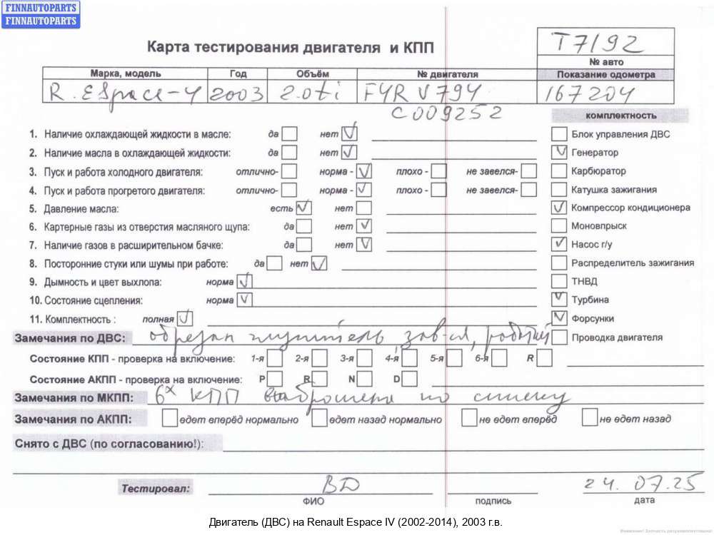 Мурманск | 2004 | F9Q 820 (двигатель нужен обязательно с форсунками). | |||